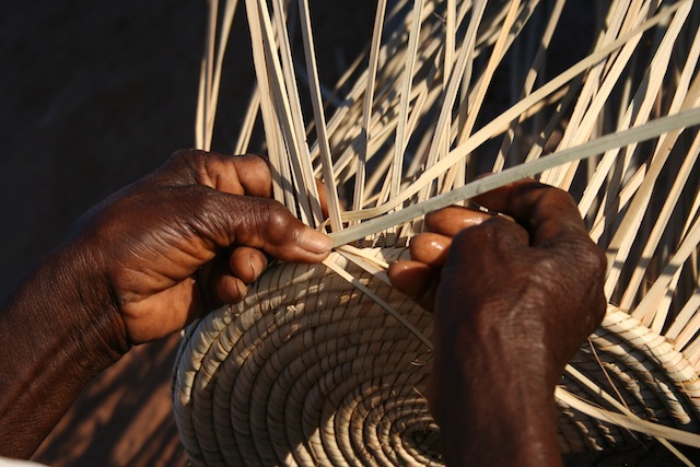“Periodically she (Grace Ngwenya) pauses to dip the last three fingers of her right hand into a shallow tin of water that sits beside her, to wet the fibres and make them pliable.”